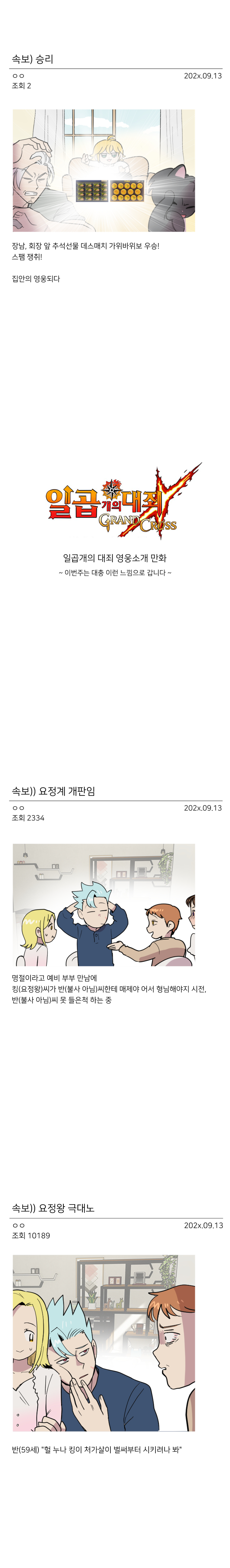오랜만에 모인 가족간 호칭, 명절 선물, 조카들의 수집품 습격 등 누구나 한번쯤 경험해봤을 법한 일들과 커뮤니티에서 벌어졌던 다양한 일들을 일곱개의대죄 캐릭터들로 대입해 유쾌함을 더했다.