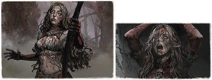 좀비, 스켈레톤, 버그베어 등의 마물이 나오는 세계가 밝고 따뜻한 이미지와는 어울리지 않는다고 생각했다. 전반적으로 낮은 채도, 어둡고 진지한 분위기를 유지하다보니 몬스터도 톤을 맞춰야했다. 몬스터의 모습을 상상하면서 디테일한 부분을 설정하지만, 심한 혐오감이나 거부감이 들 수 있는 형태는 지양하고 있다.
