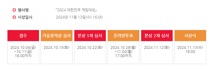 한편, 대국민 투표는 '2024 대한민국 게임대상' 공식 홈페이지(http://award.kgames.or.kr/2024gameawards/)에서 가능하며 지스타가 개최되는 부산 벡스코에서 오는 11월 13일 수상작을 발표한다.