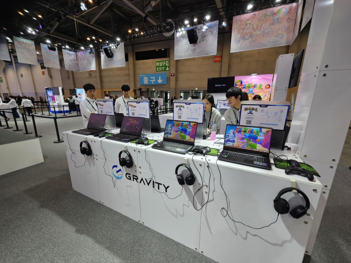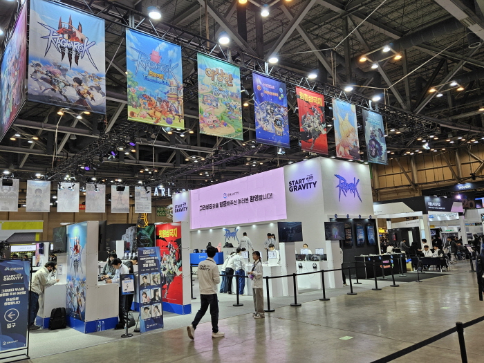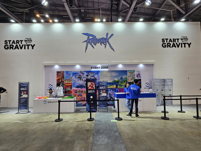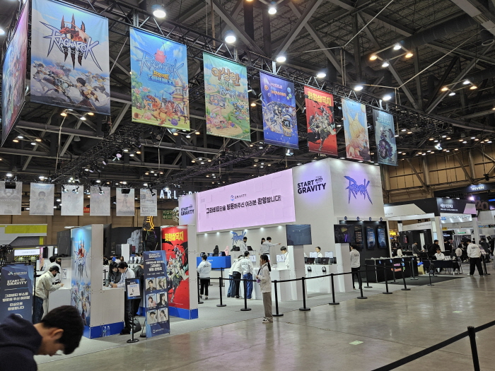 그라비티는 벡스코 제 1전시장에 50부스 규모로 부스는 작지만 자사의 모바일, PC 및 콘솔 타이틀 총 17종을 무더기 공개하며 관람객을 맞이했다.