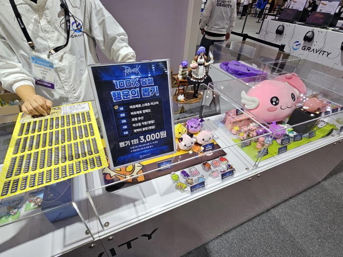 부스의 메인 스테이지 뒤편은 시연을 마친 관람객들이 그라비티 관련 상품을 구입할 수 있는 RO샵, 경품을 교환하는 경품 교환소가 위치했다. 여기서는 각종 굿즈 판매 및 이벤트 당첨자에게 경품을 지급하고 있었다.