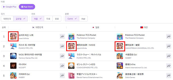 니케는 이번 2주년 업데이트로 한국뿐만 아니라 일본, 북미 등 전 세계에서 이용자 수와 매출 순위가 크게 상승했다.