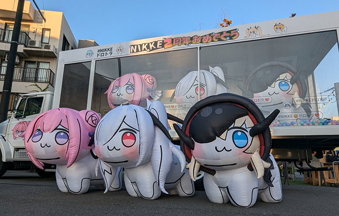 니케는 또 다른 본진이라 불리는 일본에서도 큰 성공을 거두고 있다. 일본에서 가장 이용자가 많은 앱스토어 기준 매출 순위는 2위까지 올라섰다. 니케는 일본에서도 2주년을 맞이해 대규모 이벤트를 진행 중이며 특히 니케 기반의 팬메이드 밈인 '도로롱'의 저작권을 획득, 공식적으로 사용할 수 있게 돼 이를 이용한 '도로트럭' 오프라인 이벤트를 통해 높은 호응을 이끌어 내기도 했다.