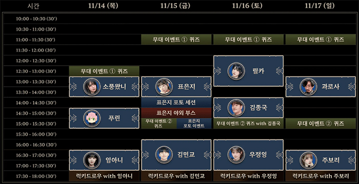 지스타 기간 연예인과 인플루언서를 활용한 이벤트도 진행된다. 김종국, 표은지, 릴카, 김민교 등 유명인들이 하이브IM 부스 메인 무대에 출연해 무대 이벤트와 함께 관람객에서 경품을 증정한느 럭키 드로우 이벤트가 진행된다.