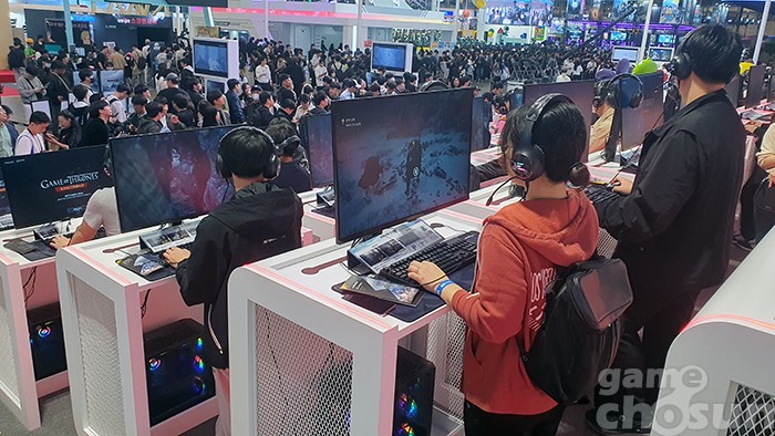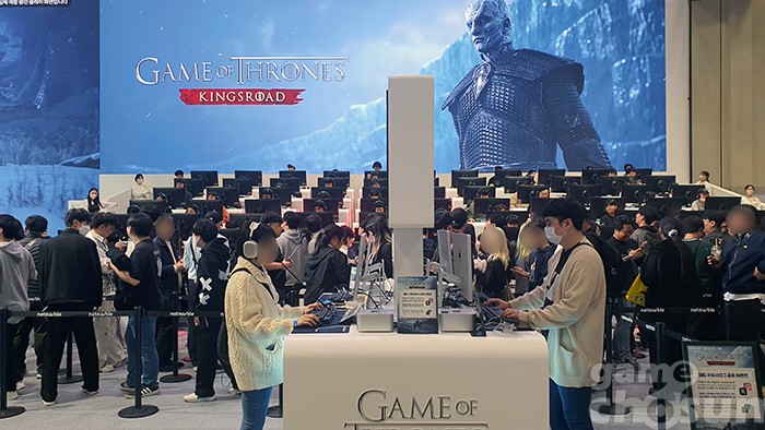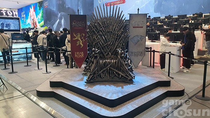 왕좌의 게임: 킹스로드는 동명의 드라마인 '왕좌의 게임'을 기반으로 개발 중인 오픈월드 ARPG로 현장에선 초반 스토리 부분이 준비됐다. 이와 함께 왕좌의 게임의 상징이라고 할 수 있는 철왕좌 모형이 배치되어 관람객들의 눈길을 끌었다.