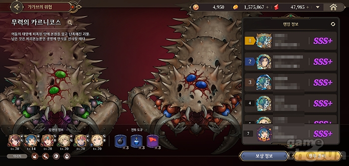 가가브의 위협 콘텐츠는 전투에서 달성한 점수에 따라 보스의 레벨이 점차 올라가게 되는 시스템으로, 현재 보스 레벨 14로 제한되어 있던 것을 영웅 성장 폭이 커짐에 따라 해제한다고 합니다.