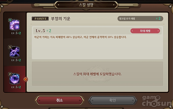 패시브 스킬 '부정의 기운'은 아군이 가하는 지속 피해량이 30% 상승합니다.