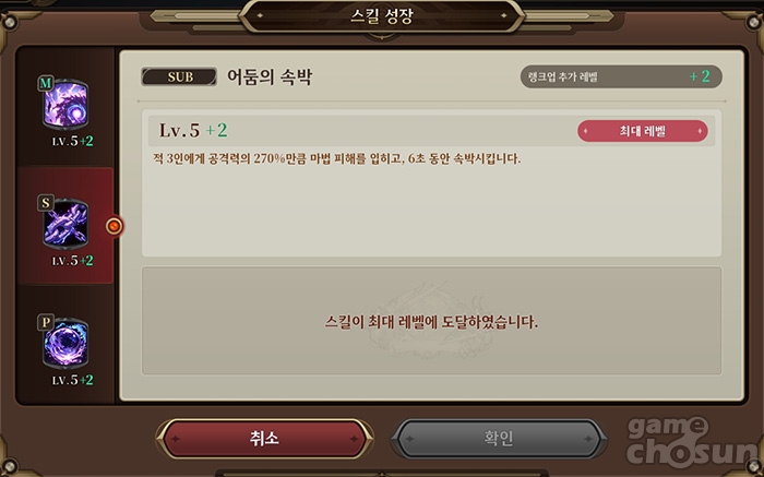 초월 5단계 효과로 '어둠의 속박'의 쿨타임이 5초 감소하고, 초월 6단계 효과로 3인을 대상으로 적용되며 속박의 지속 시간이 2초 증가합니다.