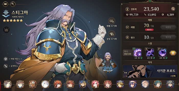 얼핏 봐서는 '루레'의 상위 호환처럼 느껴집니다. 여기에 파티 전체 영향력을 끼치는 위엄도 더해지고요. 기본 공격 효과가 '중독'이란 점에서 물리 딜러였던 '사라'에의 의존도는 낮추고, 같은 마법 딜러 중에서 '화상' 효과를 가진 '볼게이드', '루레'와의 병행 사용에도 큰 시너지를 기대할 수 있겠습니다.