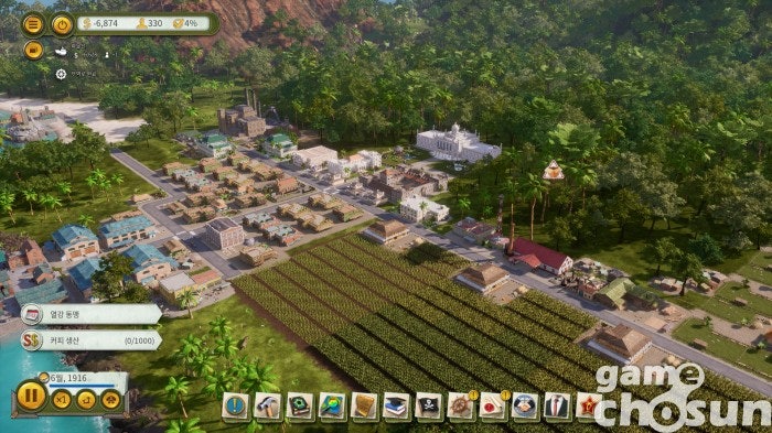 기본적인 게임 방식은 기존 건설 경영 시뮬레이션과 비슷합니다. 앞서 말한 것처럼 시민과 이민자들을 위한 생활 인프라를 꾸리고, 농장과 목장 같은 1차 산업, 이를 가공해 럼주나 옷감을 만드는 2차 산업, 그리고 관광을 위한 숙소나 유흥 시선 등 3차 산업까지 단계적으로 국가를 발전시키는 방식이죠. 이와 함께 단기적으로 건설 비용을 줄여주는 칙령이나 상황에 따른 외교 및 무역으로 경제적 이득을 취하며 국가를 운영하게 됩니다.