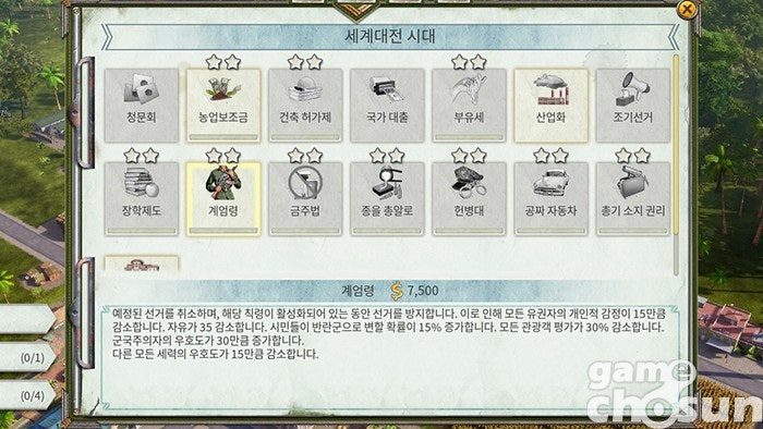 물론 이들의 의견을 무시하고 게임 오버를 계속 미루는 방법이 있습니다. 바로 '계엄령'이죠. 계엄령을 선포하면 선거가 취소되고, 게이머가 계엄령을 해제할 때까지 계속 권력을 유지할 수 있습니다.