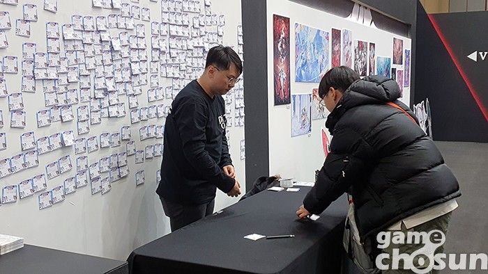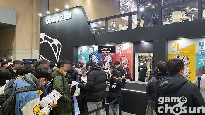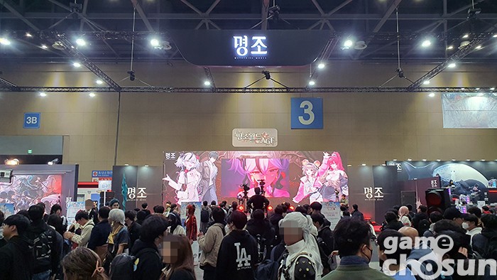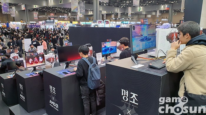 명조는 이번 행사에 메인 스폰서로 참가하는 만큼 가장 큰 부스 규모를 자랑했다. 명조 부스는 각종 이벤트가 진행되는 무대, 다양한 미니 게임을 체험하고 선물을 받아가는 아케이드 존, 직접 명조를 플레이해보는 명조xAMD 강림! 슈퍼풀돌대전, 게이머들의 멋진 그림 솜씨를 볼 수 있는 2차창작전시존, 그리고 다양한 굿즈를 구매할 수 있는 무무 물류 굿즈샵 등으로 구성됐다.