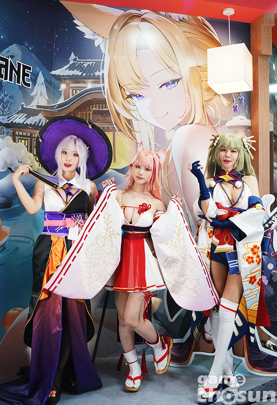 부스 현장에는 아우터플레인의 인기 캐릭터 3인, '아메'로 분한 '쫑끗', '다이안'으로 분한 '민한나', '타마모노마에'로 분한 '셀포'의 매력을 느낄 수 있는 포토 타임 이벤트는 물론 모델들과 현장을 찾은 팬들과의 짧은 만남을 갖고 대화를 나눌 수 있는 팬사인회 시간을 가졌다.