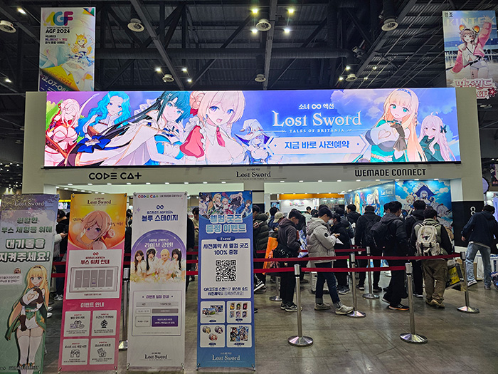아래 현장은 '위메이드커넥트'가 선보인 신작 '로스트소드' 부스 전경 및 코스프레 모델 분들의 모습을 담았습니다.
