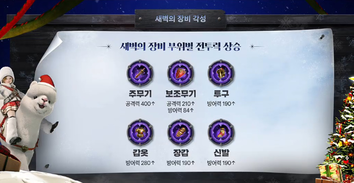 '새벽의 장비' 각성 업데이트 계획을 공개했다. 새벽의 장비 각성 시에는 '홍익의 불꽃', '혼돈의 축', '아크라드'가 필요하며 부위 별 필요한 수량은 동일하다. 각성 시 주무기 공격력 400, 보조무기 공격력 210 & 방어력 84 등이 상승한다. 새벽의 장비 각성은 12월 17일(글로벌 12월 31일) 업데이트된다.
