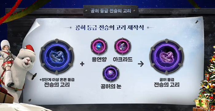 '공허 등급 전승의 고리' 업데이트 계획도 공개했다. 공허 전승의 고리는 +5 이상의 혼돈 전승의 고리와 '용연향', '아크라드', '공허의 눈'으로 제작이 가능하다. 공허 등급 전승의 고리는 마력 가능으로 치명타 피해량 최대치 증가 옵션이 추가된다.