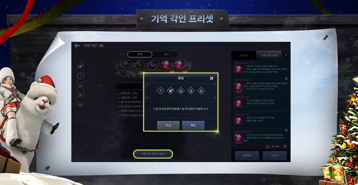 프리셋에 설정해둔 기억 각인은 가문 내 모든 캐릭터에 적용되도록 한다는 계획이며, 12월 17일(글로벌 12월 31일) 업데이트된다.