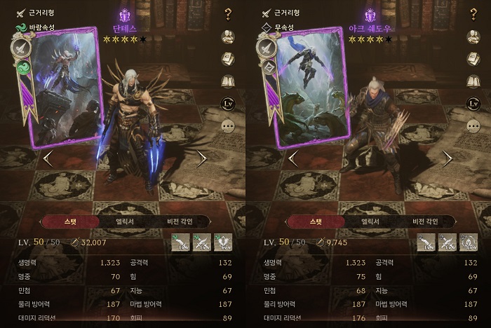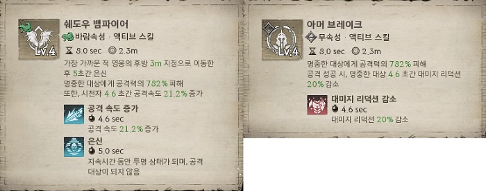 - 단테스 & 아크 쉐도우 액티브 스킬 비교