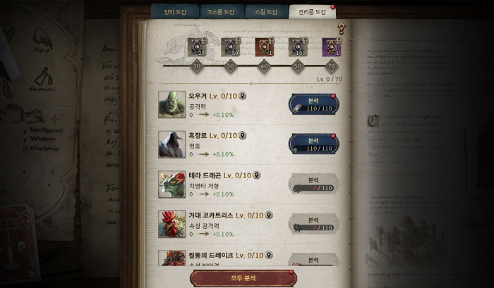 따라서 아데나 수급이 제한적인 무소과금 이용자들에게는 도감작이 오히려 성장을 늦출 수 있다. 물론 도감을 완성 시에는 영구적인 추가 능력치를 제공하기에 언젠가는 진행해야 하는 부분이기도 하다.