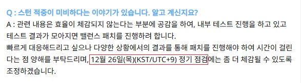 6,000 스테이지 이후의 콘텐츠는 빠른 시일 내에 업데이트될 예정이다. 12월 4주차 업데이트는 26일 이뤄질 것으로 예상되는데, 그 이유는 CM아지트에서 공개한 개발진과의 두 번째 인터뷰에서 해당 날짜에 정기 점검을 한다고 언급했기 때문이다. 기존 정기 점검이 이뤄지는 수요일이 12월 25일이 크리스마스 연휴이기에 목요일로 정기 점검 일정을 하루 미룬 것으로 보인다.