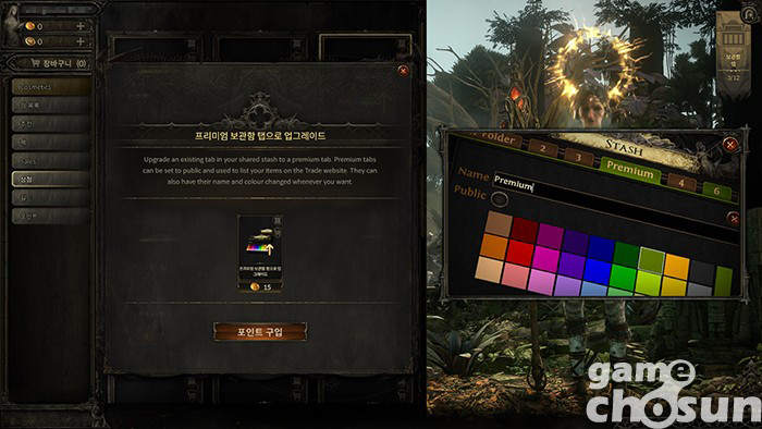 이런 게이머에게 가장 유용한 상품이 바로 추가 보관함 탭이다. 추가 보관함 탭은 단순히 공용 보관함 수를 늘려주는 것뿐만 아니라 화폐와 젬, 플라스크, 에센스, 고유 아이템, 환영까지 다양한 아이템 보관함을 제공해 좀 더 쾌적한 사냥을 즐기게 해준다.