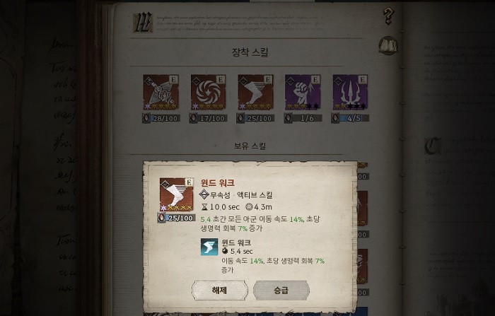 군주 지휘 스킬에도 변화를 주면서 공략 포인트를 맞춰가는 것을 추천한다. 일반 공격은 공격력 계수가 가장 높은 스킬로 장착하되, 치명타 공격과 액티브 스킬, 패시브 스킬, 오라 스킬 등은 일일던전에 맞게 구성하는 것이 좋다. 우선 던전 공략 시 생존력이 달린다면 액티브 스킬로 '윈드 워크', 혹은 '네이쳐스 터치' 등을 활용해보는 것도 공략의 방법이 될 수 있으며 오라 스킬로 '인핸스드 오라'를 장착해볼 수도 있다.