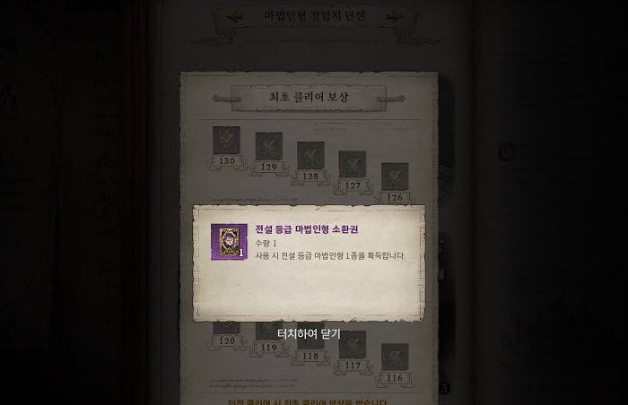 여기에 최초 클리어할 때마다 추가적인 보상이 주어지는데, 최종 층인 130층에 도달할 경우에 전설 영웅, 또는 마법인형 확정 소환권을 획득할 수 있기에 이용자들의 도전 욕구를 자극한다.