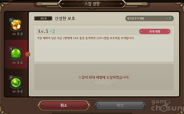 서브 스킬 '신성한 보호'는 가장 체력이 낮은 아군 2명에게 10초 동안 공격력의 210%만큼 보호막을 부여합니다.