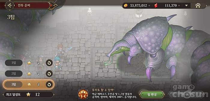 우리도 할 수 있어! - 아군 에피소드 주인공 및 1, 2성 영웅의 공격력, 방어력, 체력이 200% 증가합니다.