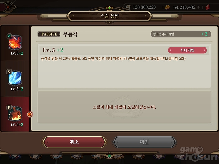 패시브 스킬 '무통각'은 공격을 받을 수 20% 확률로 5초 동안 자신의 최대 체력의 8% 만큼 보호막을 획득합니다. (쿨타임 5초)