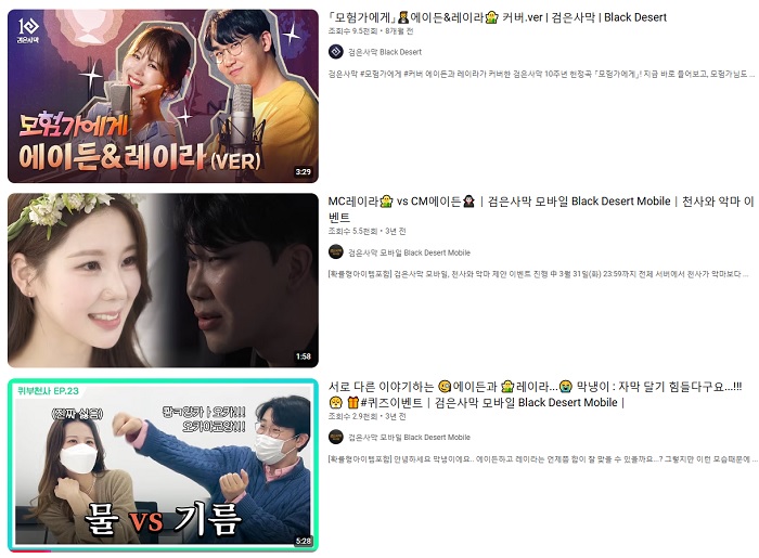 특히 다채로운 소식을 유쾌하게 전하는 CM에이든과 CM레이라 등은 검은사막 및 검은사막 모바일 이용자라면 모르는 이가 없는 유명 인사로, 두 CM의 케미는 이용자들에게 큰 웃음을 주고 있다. 게임의 주요 이슈와 이벤트를 신선한 꽁트와 토크쇼로 소개하는 등 색다른 즐거움을 제공한다.