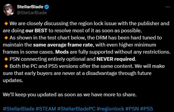 물론 개발사의 기조에 따라 모드 사용을 허가하지 않는 케이스가 적잖게 발견되고 있으며 대부분은 제한적인 활용만을 가능하도록 규정을 마련하고 있지만, 스텔라 블레이드의 경우 공식 채널을 통해 'MOD 사용에 제한을 따로 두지 않는다'고 공지하는 것은 물론 김형태 디렉터도 인터뷰를 통해 '모더들이 분발하여 공식 콘텐츠에 버금가는 퀄리티의 모드를 만드는 것에 도전했으면 좋겠다'는 의견을 밝혀 출시 초기부터 모드 시장이 굉장히 활성화된 상태입니다.