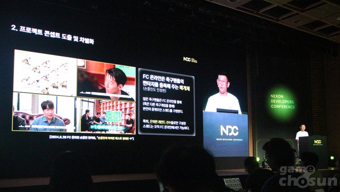 24일, 넥슨코리아 최인기 마케터는 경기창조경제혁신센터 국제회의장에서 축구팬들의 판타지를 현실로 구현한 '넥슨 아이콘 매치'의 프로젝트 구축 과정을 소개하는 포스트모템 세션을 진행했다.