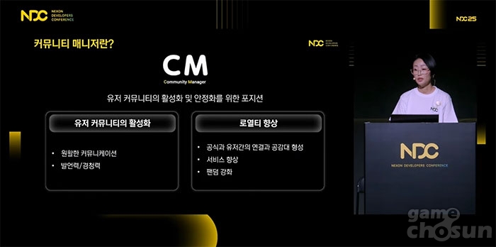 그는, 흔히 CM이라 불리는 커뮤니티 매니저는 유저 커뮤니티 활성화 및 안정화를 위한 포지션으로, 유저의 이야기를 들어주며 소통하면서 긍정적인 면은 강화하고, 부정적인 면은 해결해 나가는 포지션을 가지고 있다고 설명하며, 일본 시장에서의 메이플스토리 유저와의 더 친밀한 커뮤니케이션 활성화를 위한 고민하다 현재 일본 내 다양한 기업이 활용하는 버튜버에서 힌트를 얻어 커뮤니티 매니저를 기획하게 됐다고 밝혔다.