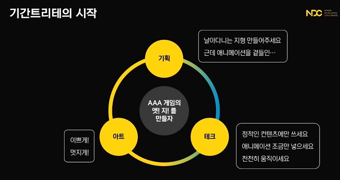 해당 강연은 엔씨소프트 퍼스트스파크 게임즈의 임재호 서버 프로그래머와 이재윤 클라이언트 프로그래머가 진행했으며, 임재호 개발자는 공성병기인 배틀캐리어의 탄생 과정을, 그리고 이재윤 개발자는 기간트리테와 개발 노하우를 공유했다.