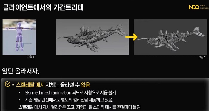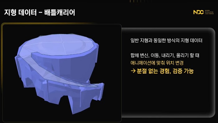 TL은 해당 거대 탑승물을 움직이는 지형으로 구현하면서 이용자에게 색다른 경험을 제공할 수 있게 됐는데, TL의 상징물과도 같은 배틀캐리어와 기간트리테가 어떻게 구현할 수 있었는지, 그리고 이를 구현하기 위해 직면하게 된 과제를 어떤 방식으로 풀어나갔는지에 대해 '넥슨 개발자 콘퍼런스 2025 (NDC25)'에서 소개했다.