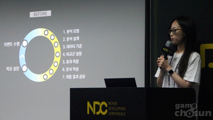 넥슨 지하 1층에 마련된 NDC 25 발표장에서 김유진, 오진석 넥슨코리아 데이터 분석가들은 이러한 의문에 답을 구하는 세션을 마련했다.