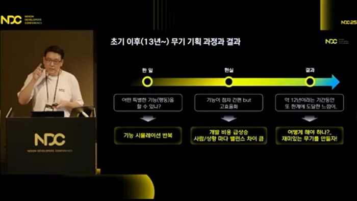 이는 재미있는 무기를 만드는 것으로 기획 방향을 전환하는 계기가 됐다. 예를 들어 2024년 '브류나크'라는 무기를 선보였는데, 2021년에 출시된 에픽 무기인 '흑영쌍부'가 이미 최고의 무기로 자리매김하고 있었다. 브류나크는 이미 최적의 밸런스를 가진 흑영쌍부를 성능적으로 뛰어넘기보다는 플레이에 즐거움을 주는 다른 포지션의 무기를 만드는 것에 중점을 뒀다.