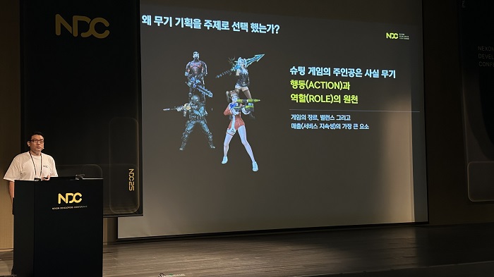 박영일 기획자는 "슈팅 게임의 주인공은 사실 무기"라고 언급하면서 "행동과 역할의 원천이며 게임의 장르 및 밸런스, 그리고 매출의 가장 큰 요소"라고 설명했다.