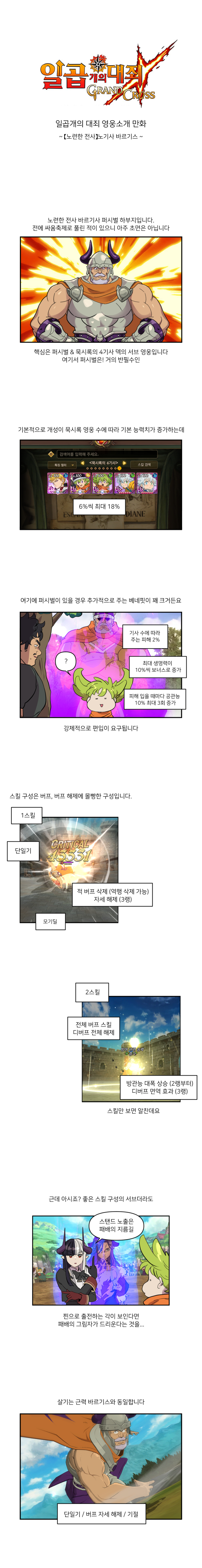 이번 웹툰에서는 지난 19일 업데이트를 통해 추가된 신규 영웅 '【노련한 전사】노기사 바르기스'에 대해 유쾌하게 소개하고 있다. 바르기스는 묵시록의 4기사에서 등장하는 인물로, 해당 작품의 주인공이라 할 수 있는 퍼시벌의 할아버지이다. 특히 퍼시벌에게 가장 소중한 존재로 여겨지는 만큼, 바르기스의 신규 영웅 출시를 기대했던 이용자도 많았다.