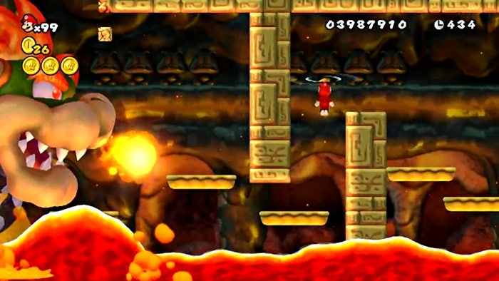 심지어 용암이 아니더라도 팔팔 끓는 온천이나 터지면 몹시 뜨거운 폭탄을 마구마구 깔아둔 장소를 스테이지로 삼고 이를 마리오를 공격하는 수단으로 활용하는 기믹이 꽤나 빈번하게 관측되는데요. 높은 확률로 이를 역이용하여 쿠파를 자멸하도록 만드는 것이야말로 슈퍼마리오 시리즈의 즈언통적인 공략방법이라는 것이 아이러니한 부분 되겠습니다.