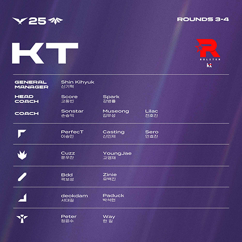 라이엇 게임즈가 개발 및 서비스하는 '리그 오브 레전드(LoL)'의 이스포츠 한국 프로 리그인 LCK를 주최하는 리그 오브 레전드 챔피언스 코리아(대표 오상헌, 이하 'LCK')는 오는 23일부터 8월 17(일)까지 진행되는 2025 LCK 3~4라운드의 로스터를 공개했다.