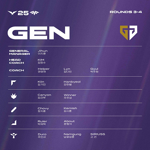이외에도 DRX의 미드 라이너 '아카제' 최수혁, 디플러스 기아의 탑 라이너 '네비드' 박민우, 한화생명e스포츠의 탑 라이너 '강인' 최강인, BNK 피어엑스 '에노시' 곽규준 등이 3~4라운드 로스터에 새로이 이름을 올렸다.