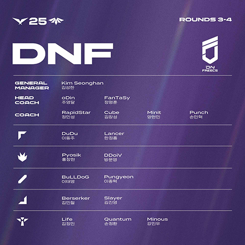 1승17패로 최하위에 랭크되면서 1~2라운드를 마친 DN 프릭스는 3~4라운드를 새로운 사령탑과 함께 한다. DN 프릭스를 이끌 인물은 주영달 총감독으로, 과거 삼성 갤럭시와 젠지 시절 코치로 활동하면서 수 차례 우승컵을 들어 올린 바 있다. DN 프릭스의 사무국장을 맡고 있던 주영달은 팀이 1승17패를 당하면서 최하위로 내려가자 사무국장 직책을 내려 놓고 총감독직을 맡기로 했다. 다른 종목에도 신경을 쓰긴 하지만 주영달 총감독은 LoL팀에 집중할 예정이다. 1~2라운드에 감독으로 팀을 이끌었던 정민성은 코치로 시즌을 함께 할 계획이다.