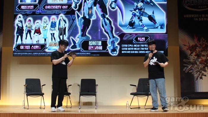 MC는 닥말 '오성균'과 함께 평소 시리즈의 열렬한 팬임을 어필해온 성우 '김혜성'이 맡았으며 슈퍼로봇대전 시리즈의 새 메인 프로듀서로 자리잡은 '토마 코타'를 통해 신작의 개발 비화를 비롯한 다양한 이야기를 들어볼 수 있었다.