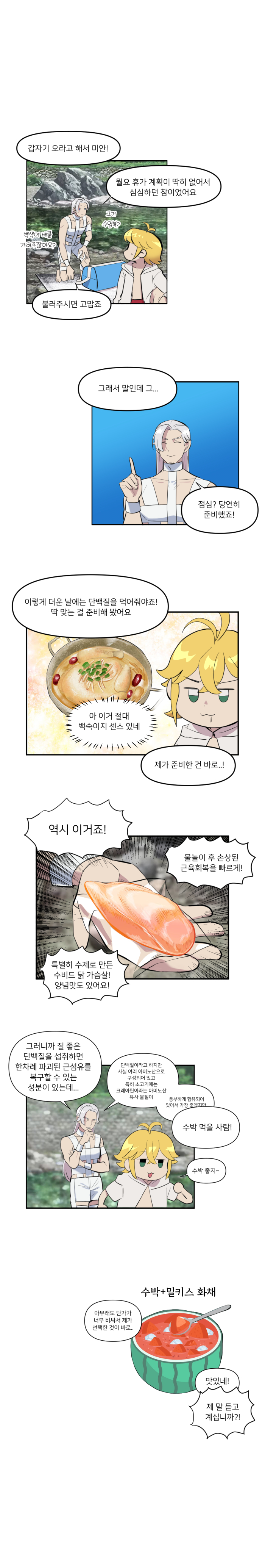 이번 신규 웹툰에서는 멜리오다스와 엘리자베스, 마신왕에게 잠식 당한 젤드리스(마신왕 젤드리스)와 게르다, 그리고 마엘이 여름을 맞이해 산 속 계곡으로 휴가를 떠나는 내용이 펼쳐진다.