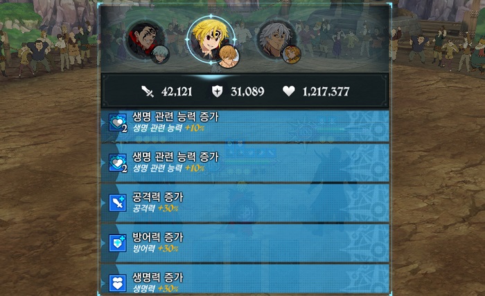 적에게 피해를 주거나 적 턴에 스킬 사용으로 마신 아군 영웅이 피해를 받을 경우에도 생명 관련 능력이 10%이 증가하며, 최대 5개까지 쌓죠. 추가로 모든 적에게 3턴 간 받는 피해 5%씩 증가하는 디버프를 최대 5중첩 시키기도 합니다.
