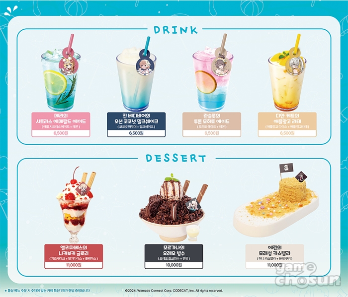 콜라보 카페 준비된 메뉴는 다음과 같습니다.