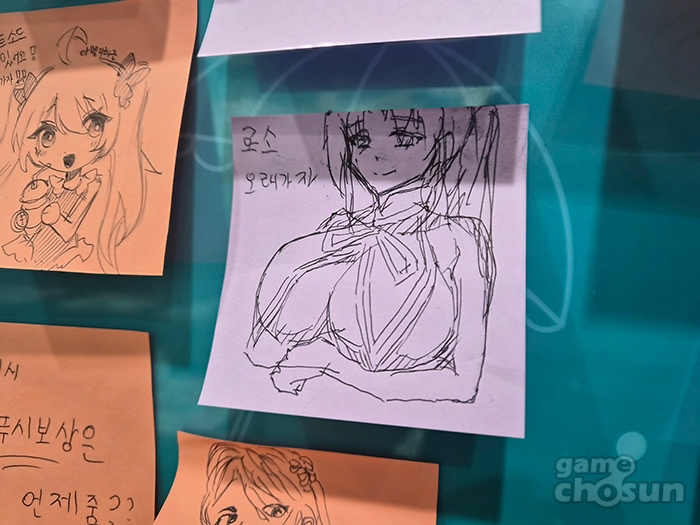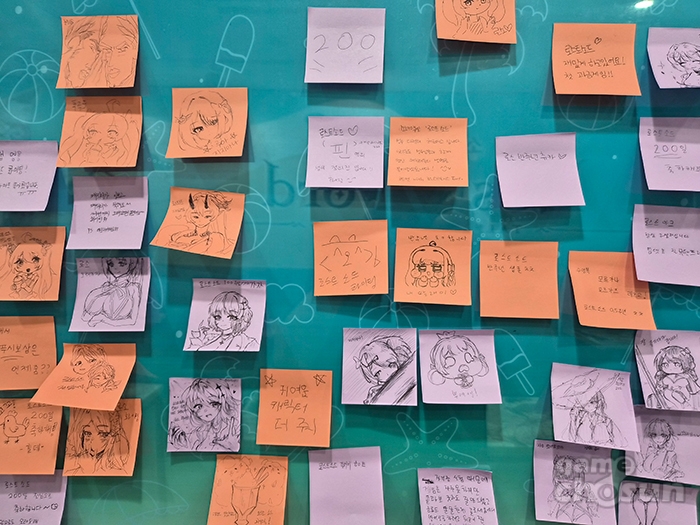 매장 한 편에는 방문 소감을 남길 수 있도록 이용자분들이 남긴 포스트잇을 모아볼 수 있었습니다. 이미 많은 유저들이 각자의 방식으로 방문 소감과 응원 글을 남겼고, 특히, 그림 실력을 뽐낸 소감들이 눈에 띄었습니다.