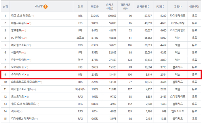 이용자들 사이에서는 순간 판단이 승패를 좌우하는 긴장감과 극적인 역전을 이끄는 짜릿한 슈퍼플레이가 ‘슈퍼바이브’만의 매력으로 호평받고 있으며, 신규 이용자 유입과 기존 이용자의 플레이 시간이 모두 늘어나며 정식 출시 이후 최고 순위를 경신, 장기적인 흥행 기반을 다지고 있는 모습이다.
